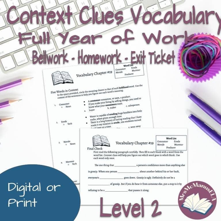 This full year of vocabulary curriculum comes with bellwork, homework and exit tickets for approximately 35 weeks of instruction. Including pre and post assessments, parent pages, 150 new words, and over 500 example sentences.