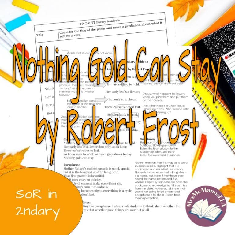 This lesson on the poem Nothing Gold Can Stay by Robert Frost is ideal for the FALL Season.